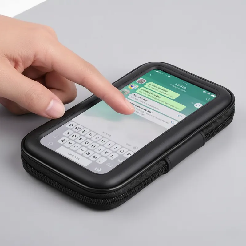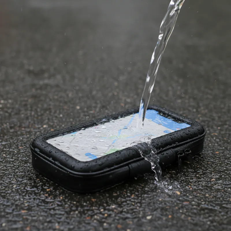 Lo probé durante una carrera con mucho barro y nada atravesó la funda. Me permite hacer zoom en los mapas con los guantes puestos, super conveniente.