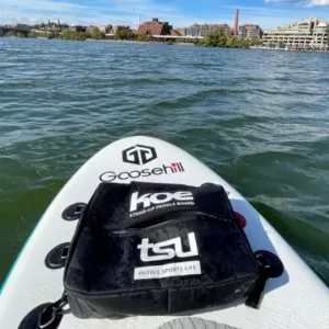 Me encanta esta bolsa para tabla. Es completamente impermeable, así que mi teléfono y cartera se mantienen secos en cada viaje. Las cremalleras son muy resistentes y duraderas. Además, es muy ligera, lo cual es ideal al remar. También es súper fácil de colocar y quitar de mi tabla.