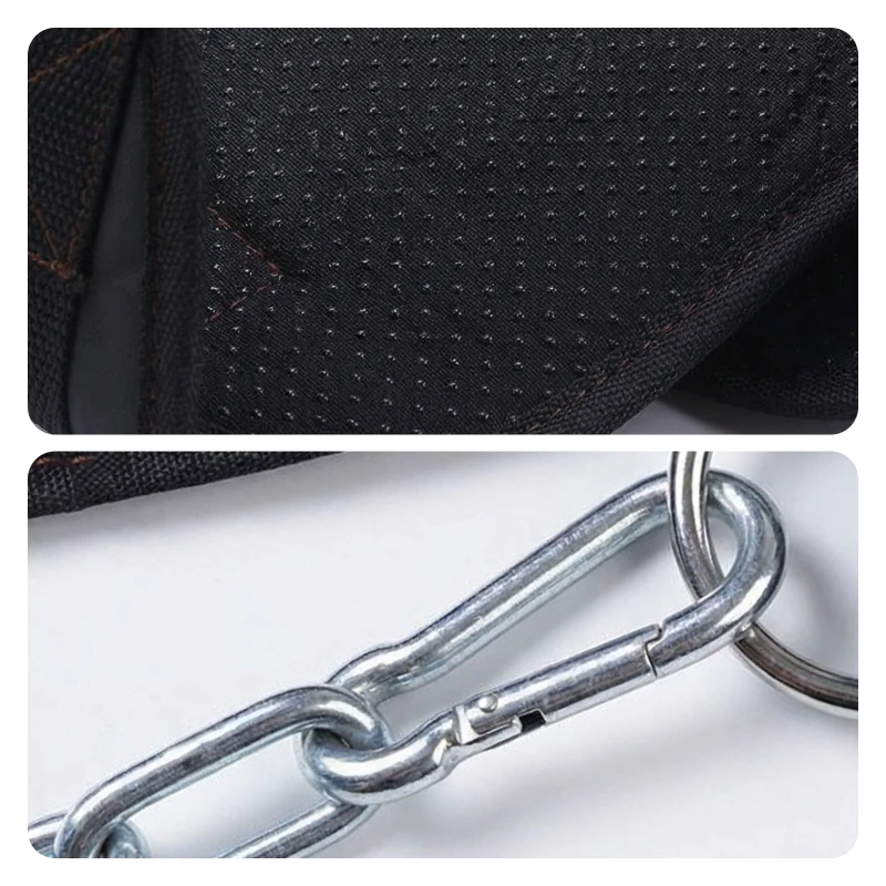 La cadena resistente y las costuras reforzadas soportan grandes pesos sin fallar. Confía en esta herramienta para innumerables sesiones de entrenamiento.