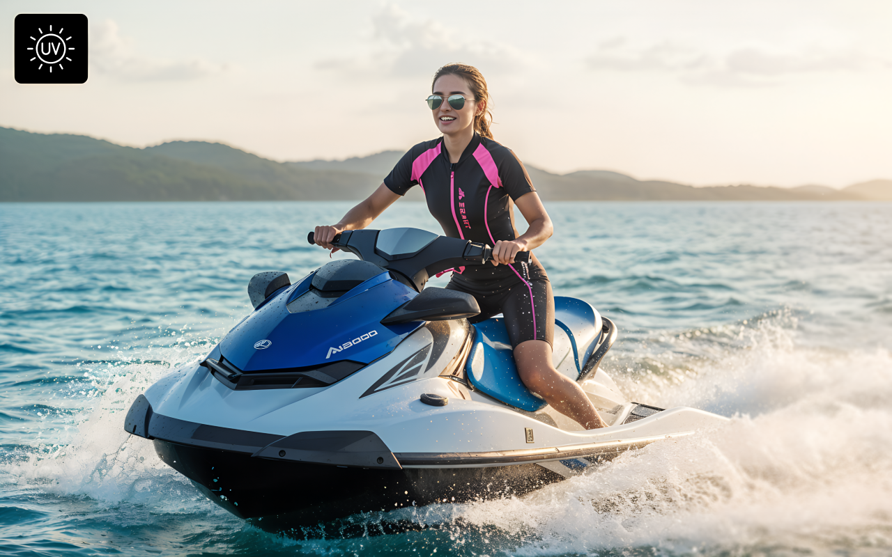 El traje Threo protege contra los rayos fuertes y los irritantes de la playa. Las áreas sensibles permanecen cubiertas mientras disfrutas del sol con seguridad.